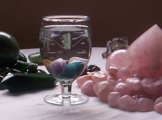 – Coloque água mineral sem gás num recipiente transparente com alguns cristais escolhidos de acordo com o tipo de cura desejada. Deixe no Sol da manhã por um período de mais ou menos quatro horas e depois cobra o recipiente com um pires e conserve em temperatura ambiente. A pessoa a ser beneficiada deverá beber pelo menos dois copos dessa água por dia.